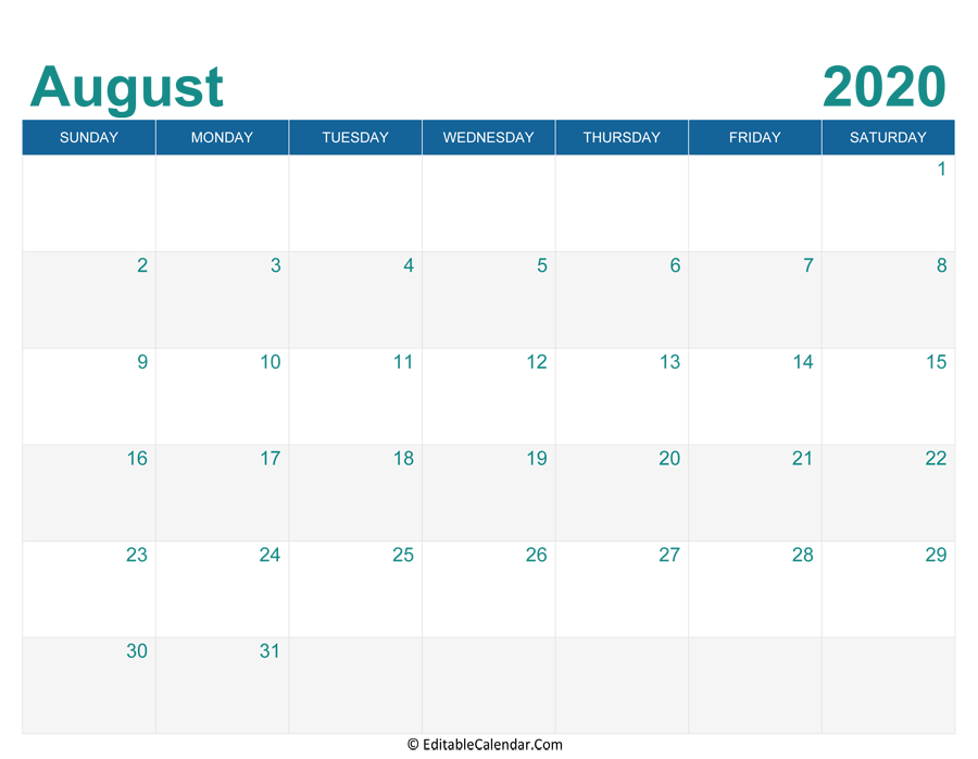At EditableCalendar.Com you can download and print August 2020 Editable Calendar for free but dont forget to share this calendar to your friends via facebook, twitter, pinterest. Copy and paste this code to your website, blog if you want to share this August 2020 Editable Calendar.