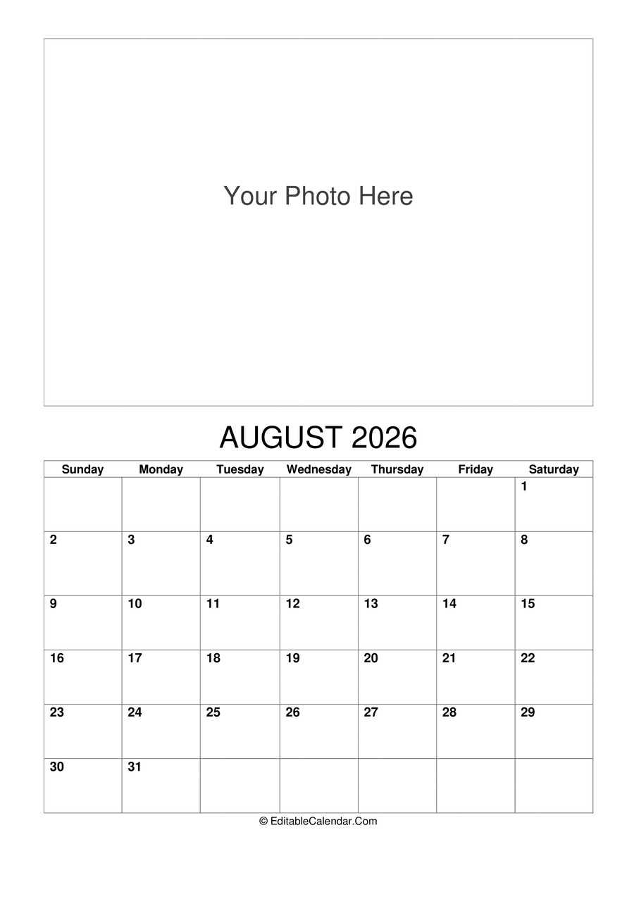 At EditableCalendar.Com you can download and print for free but dont forget to share this calendar to your friends via facebook, twitter, pinterest. Copy and paste this code to your website, blog if you want to share this August 2026 Calendar Templates in Word, PDF, Excel.