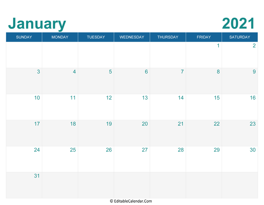 At EditableCalendar.Com you can download and print January 2021 Editable Calendar for free but dont forget to share this calendar to your friends via facebook, twitter, pinterest. Copy and paste this code to your website, blog if you want to share this January 2021 Editable Calendar.