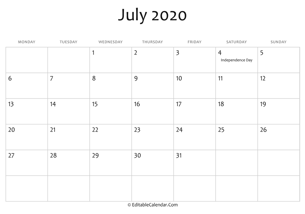 At EditableCalendar.Com you can download and print for free but dont forget to share this calendar to your friends via facebook, twitter, pinterest. Copy and paste this code to your website, blog if you want to share this July 2020 Printable Calendar.