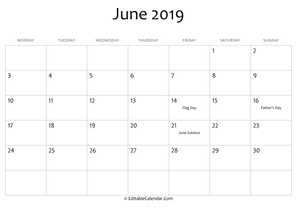 Copy and paste above text into your website to link to this Editable Calendar June 2019.