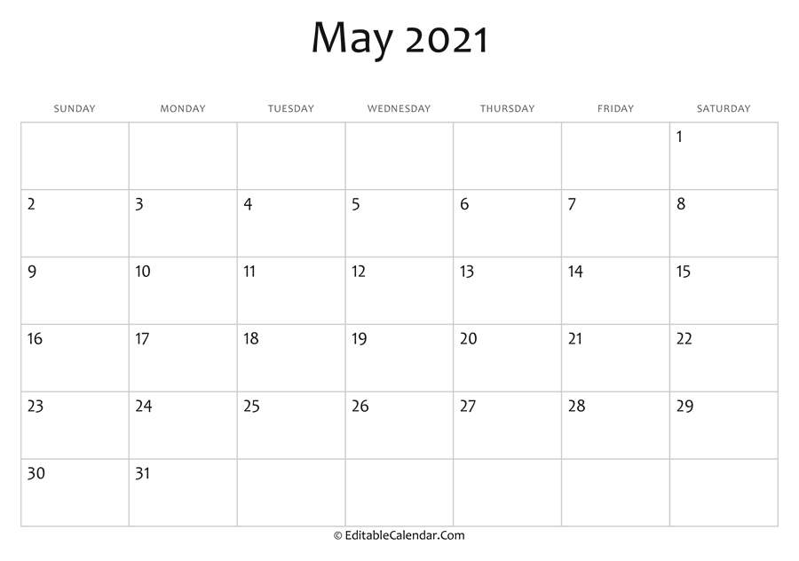At EditableCalendar.Com you can download and print for free but dont forget to share this calendar to your friends via facebook, twitter, pinterest. Copy and paste this code to your website, blog if you want to share this May 2021 Printable Calendar.