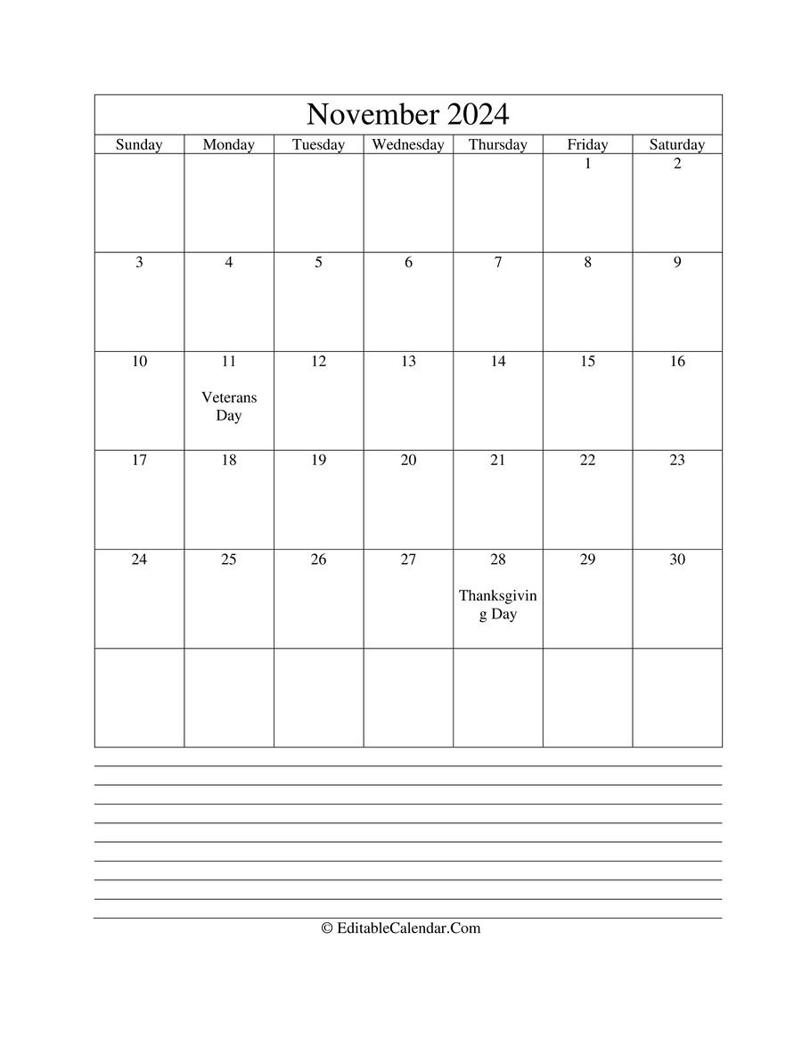 Copy and paste above text into your website to link to this Editable Calendar November 2024.