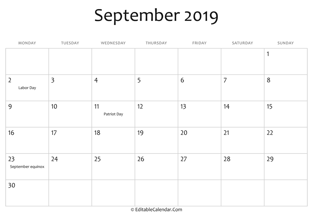 Download other monthly calendar 2019 for september from our september calendar templates. Below are some layouts for September 2019. See the preview then choose one to download and print.